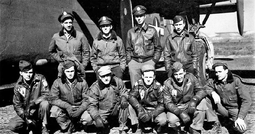 Kneeling L-R: Willis M. DeForest (G); William J. Brannon (G); Joseph A. Gallelli (G); Vincent A. Beeson (E); George M. Smith (RO); Edward D. Dworetsky (G). Not Shown, James D. Kelley (RO of original crew).